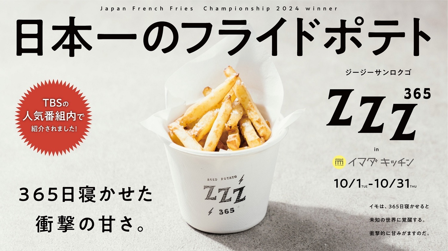 株式会社SHIBUYA109エンタテイメント(本社:東京都渋⾕区/代表取締役社⻑:石川 あゆみ)が運営するSHIBUYA109渋谷店「IMADA KITCHEN(イマダ キッチン)」において、合同会社Glassy(本社:北海道勇払郡/代表社員:上野 博貴)の運営する「zzz365(ジージーサンロクゴ)」を2024年10月1日(火)~2024年10月31日(木)の期間限定で出店いたします。