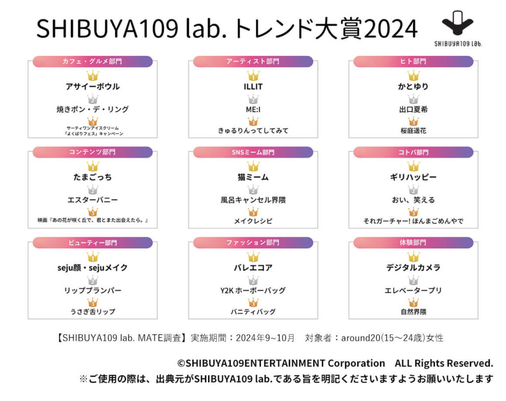SHIBUYA109 lab. MATEが選ぶSHIBUYA109 lab.トレンド大賞2024