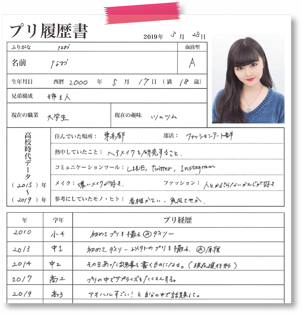 「プリ帳」からガールズカルチャー史をひも解く本連載。第12回目のゲストは、この春、高校を卒業したばかりのなおさん。