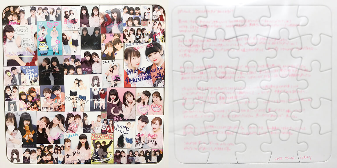 私はプリをプレゼントに利用することが多いんです。例えば、フライングタイガーで買った白いジグゾーパズルの内側に、誕生日の友達とのプリを敷き詰めて、プレゼントしたことがあります。パズルを組み立てると、手書きのメッセージが出てくるというサプライズです。