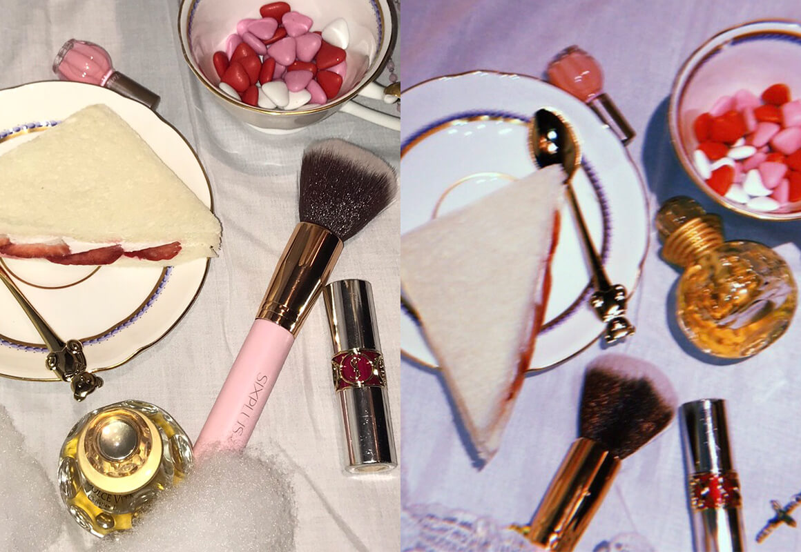 左:iPhoneのカメラで撮ったもの/右:iPhoneのアプリでフィルムカメラ風に撮ったもの