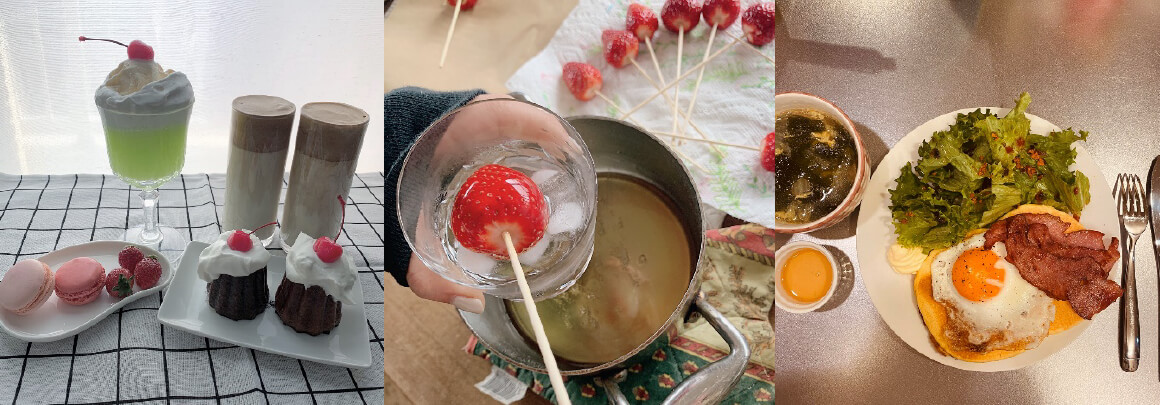 <タルゴナコーヒー><いちご飴><家族と一緒に料理>
