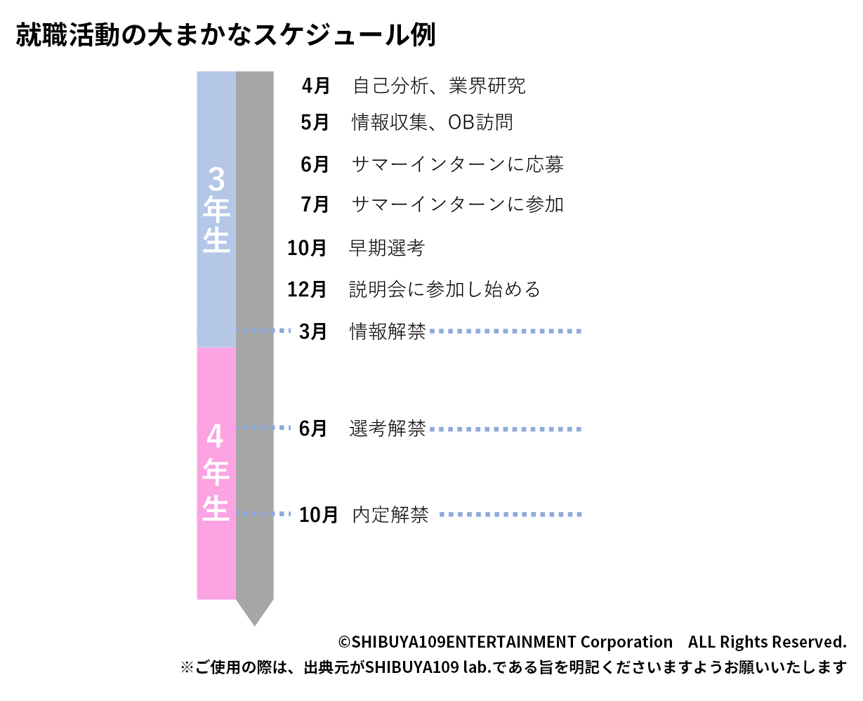 早い人だと、3年生になった段階から就職活動を始めているようです。