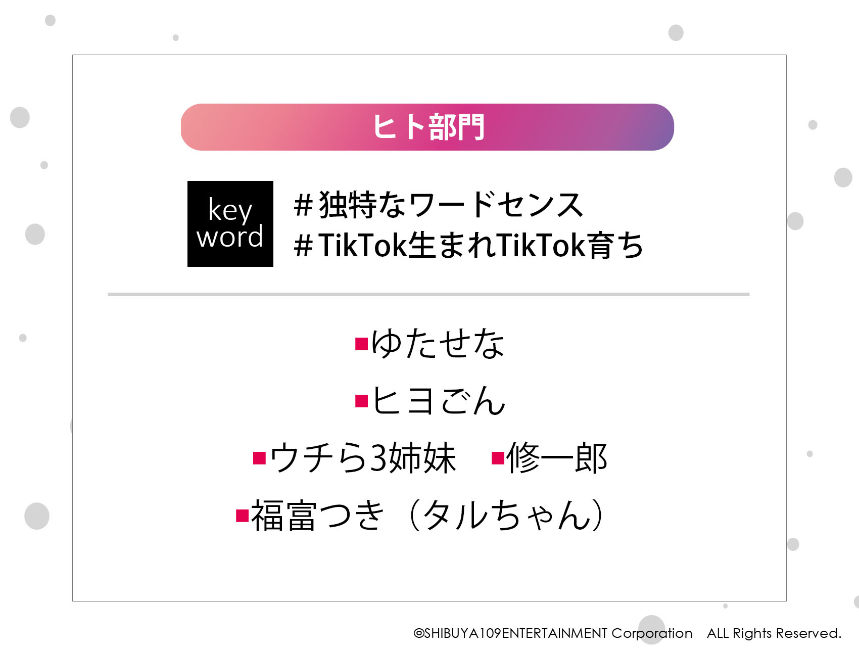 特にSHIBUYA109 lab.トレンド大賞2020「アーティスト部門」でもポイントとなったTikTokが、来年も大きな影響を及ぼしそうです。