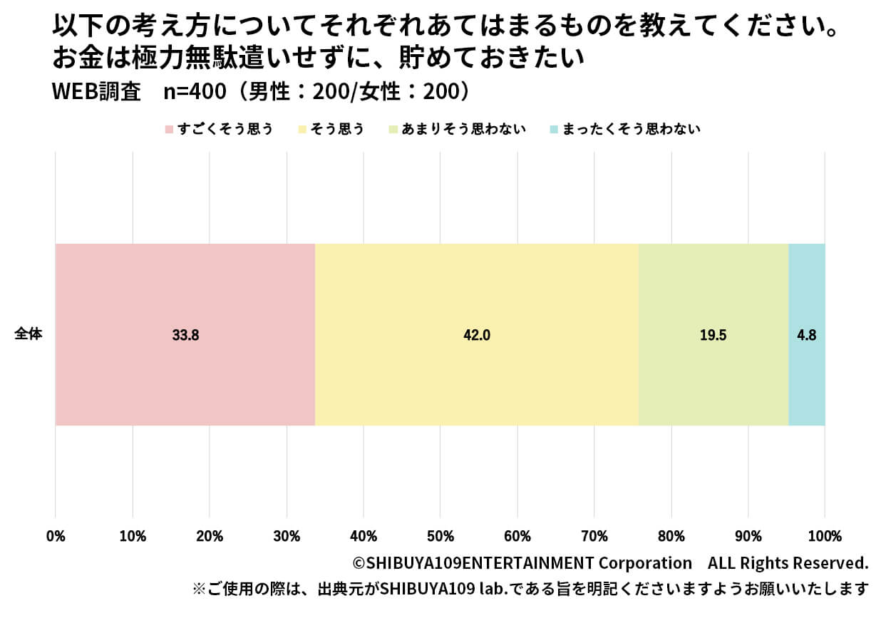 家計簿を記録する理由として多く聞かれたのが「浪費癖を直すため」。WEB調査の結果でも、75.8%が「お金は極力無駄遣いせずに、貯めておきたい」と回答しており、無駄遣いに対する抵抗感があることがわかります。