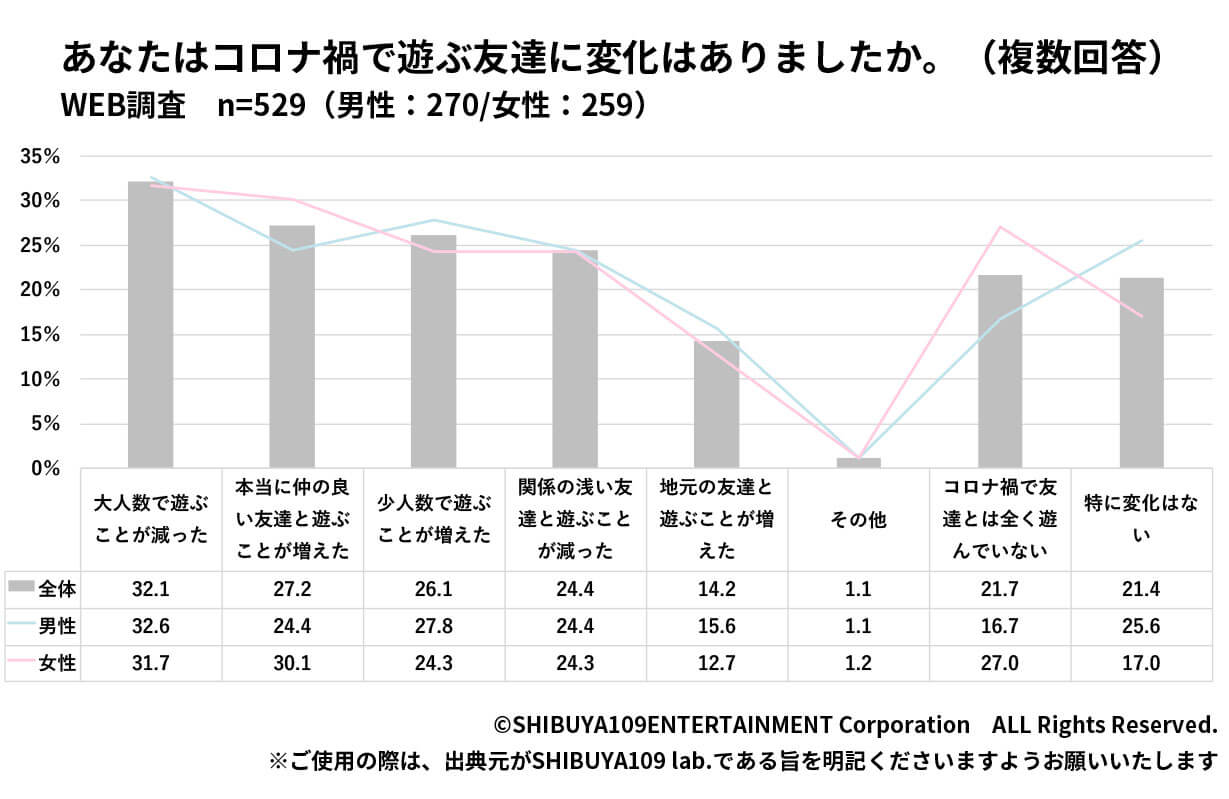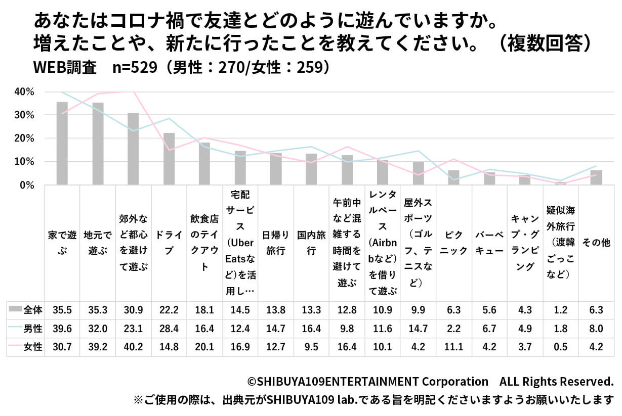 SHIBUYA109 lab.のこれまでの調査では、コロナ禍によりZ世代の交友関係や遊び方に変化が表れていることがわかっています。普段の遊び方や旅行に制限がかかる中、彼らはどのように工夫して過ごしているのでしょうか。
