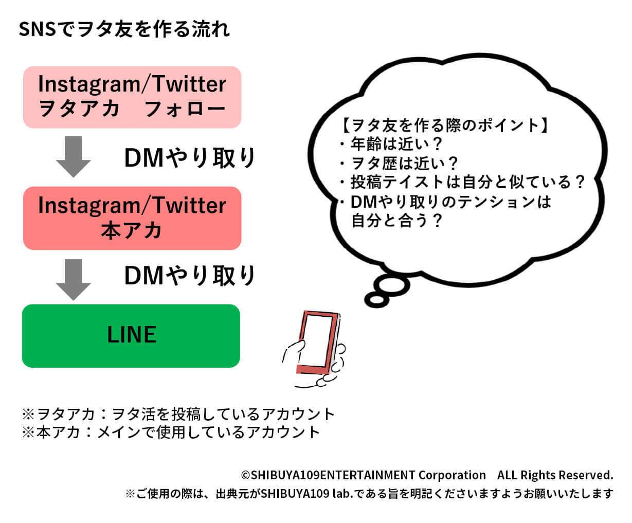 この流れはヲタ活に限らず、Z世代が友達を作る流れと同様です。
