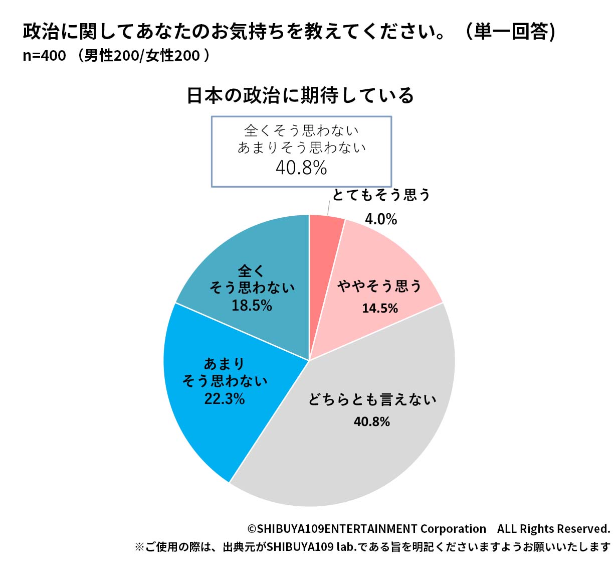 SHIBUYA109 lab.のこれまでの調査では、Z世代は社会課題に関心が高く、昨年度の調査でも高い投票意向があることがわかっています。そんなZ世代は今後控えている選挙や政治家に対してどのように考えているのでしょうか。一都三県に住む男女を対象とした定量調査と、定性調査を実施し、彼らの政治に対する意識を明らかにしました。