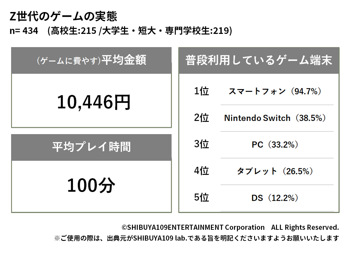 Z世代の親世代は、ファミコン等子供の頃からゲームを楽しんできた世代であるため、ゲームに対して寛容な態度が見られます。そのため、子であるZ世代にとっても、ゲームは非常に身近なコンテンツの一つです。