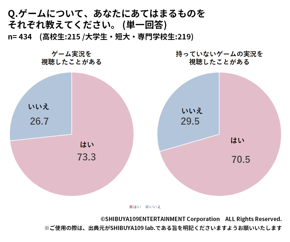 ゲームをしない・ゲームセンターでしかプレイしない方は本調査対象外。