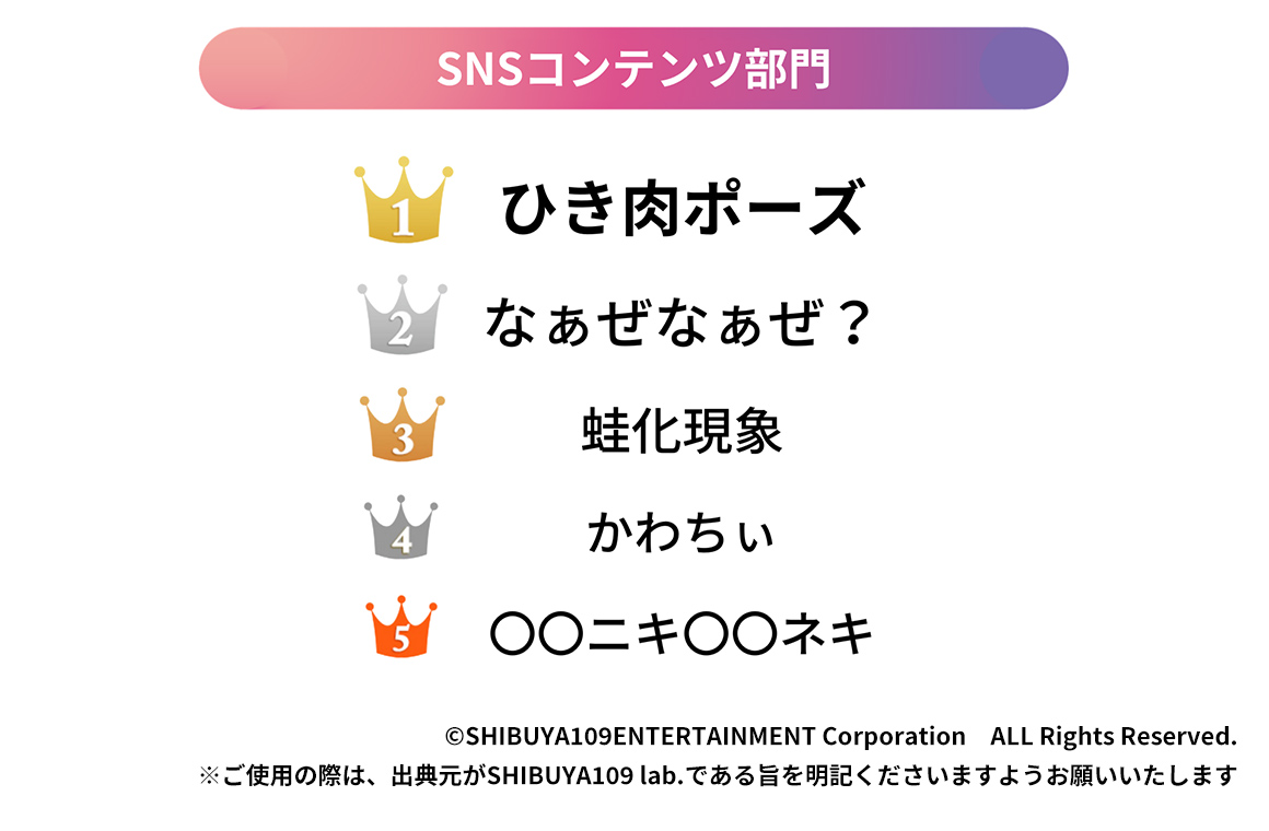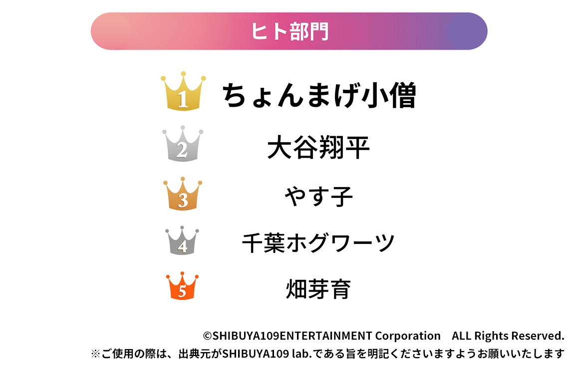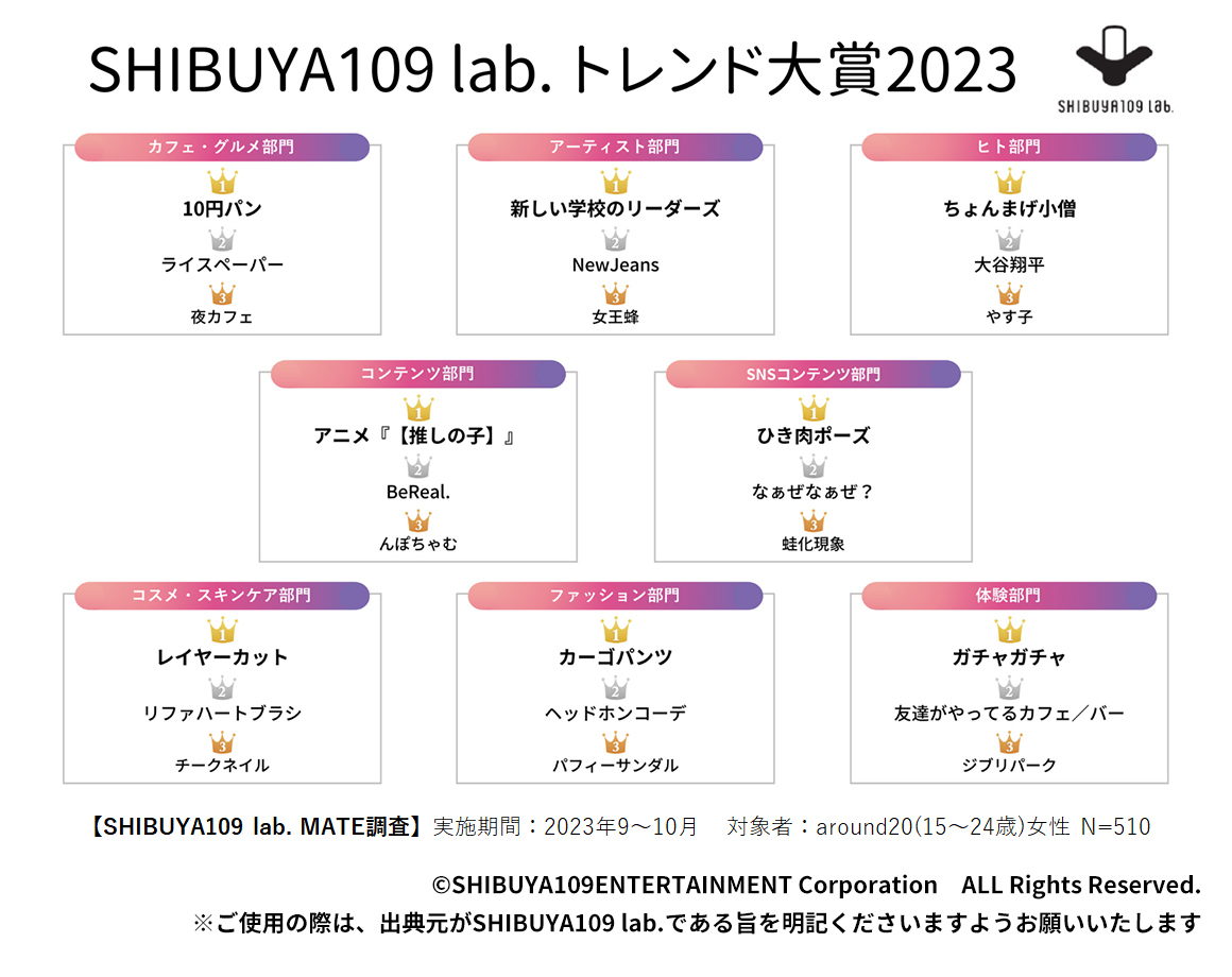 ノミネートを元に、各部門についてSHIBUYA109 lab.ネットワークに所属するZ世代510名にアンケート調査を実施。各部門のトレンド大賞に選ばれたのはこちら