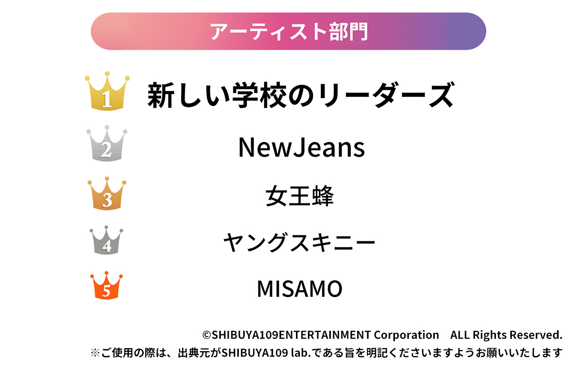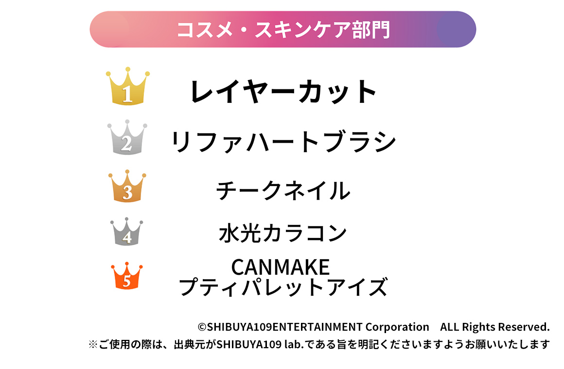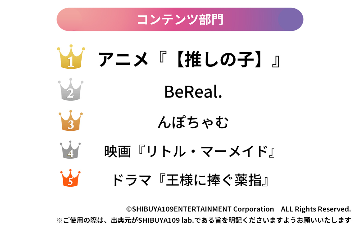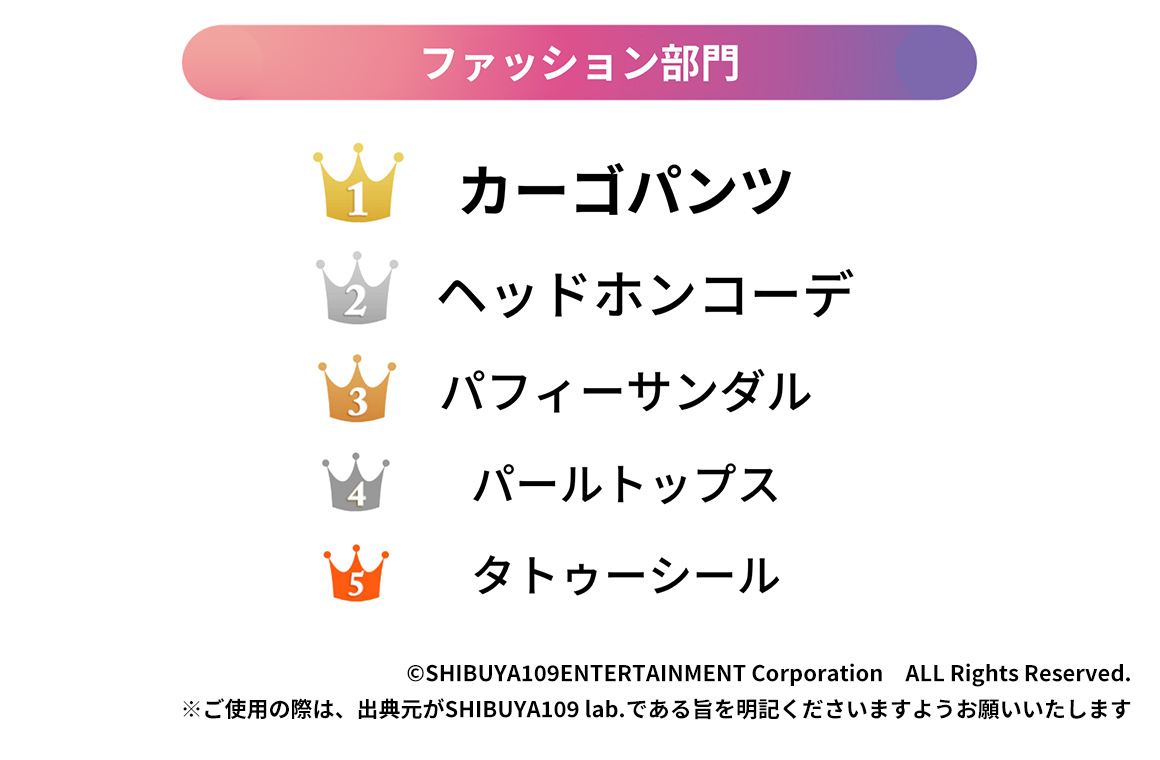 ノミネートを元に、各部門についてSHIBUYA109 lab.ネットワークに所属するZ世代510名にアンケート調査を実施。各部門のトレンド大賞に選ばれたのはこちら