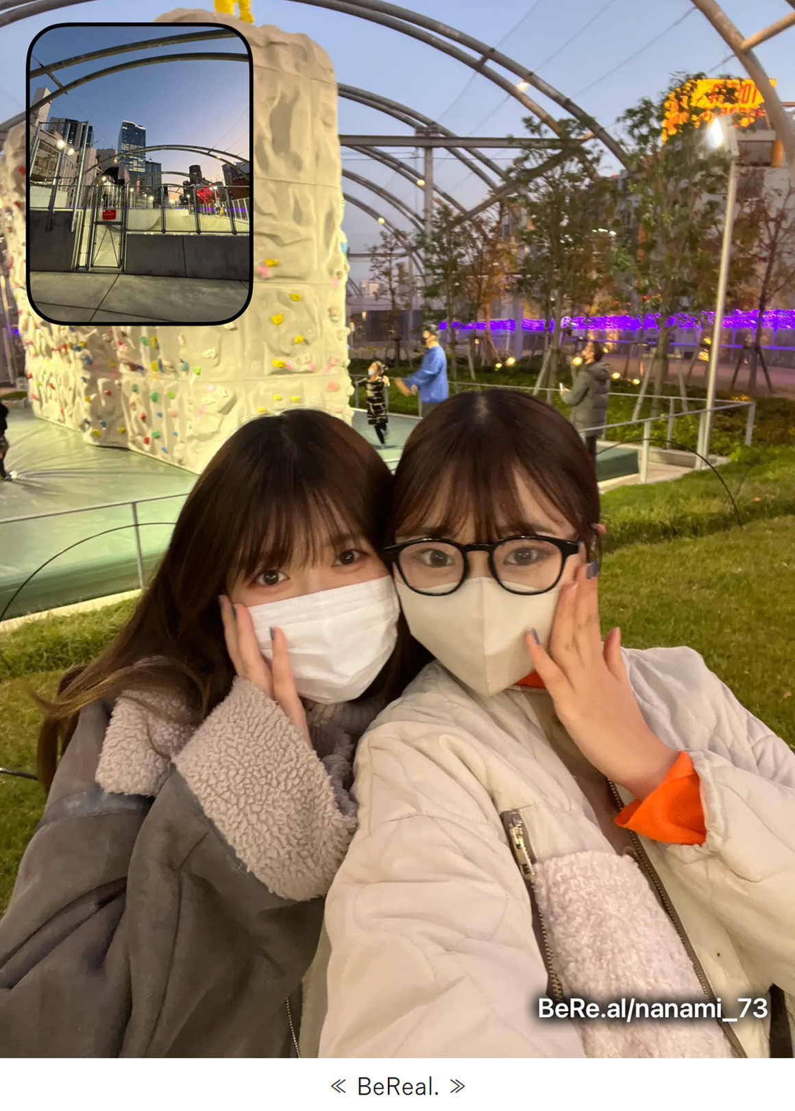 1日1回、特定の時刻に届く通知から写真をその場で撮影し、投稿するSNS。「加工しない」ありのままの姿を友人に共有できることで、リアルな自分の生活を共有し合えることが魅力です。他のSNSと異なり、加工機能がないため、リアルな「盛れない写真」を共有するSNSであることから、等身大の自分を共有できる相手とだけの繋がりを楽しんでいます。