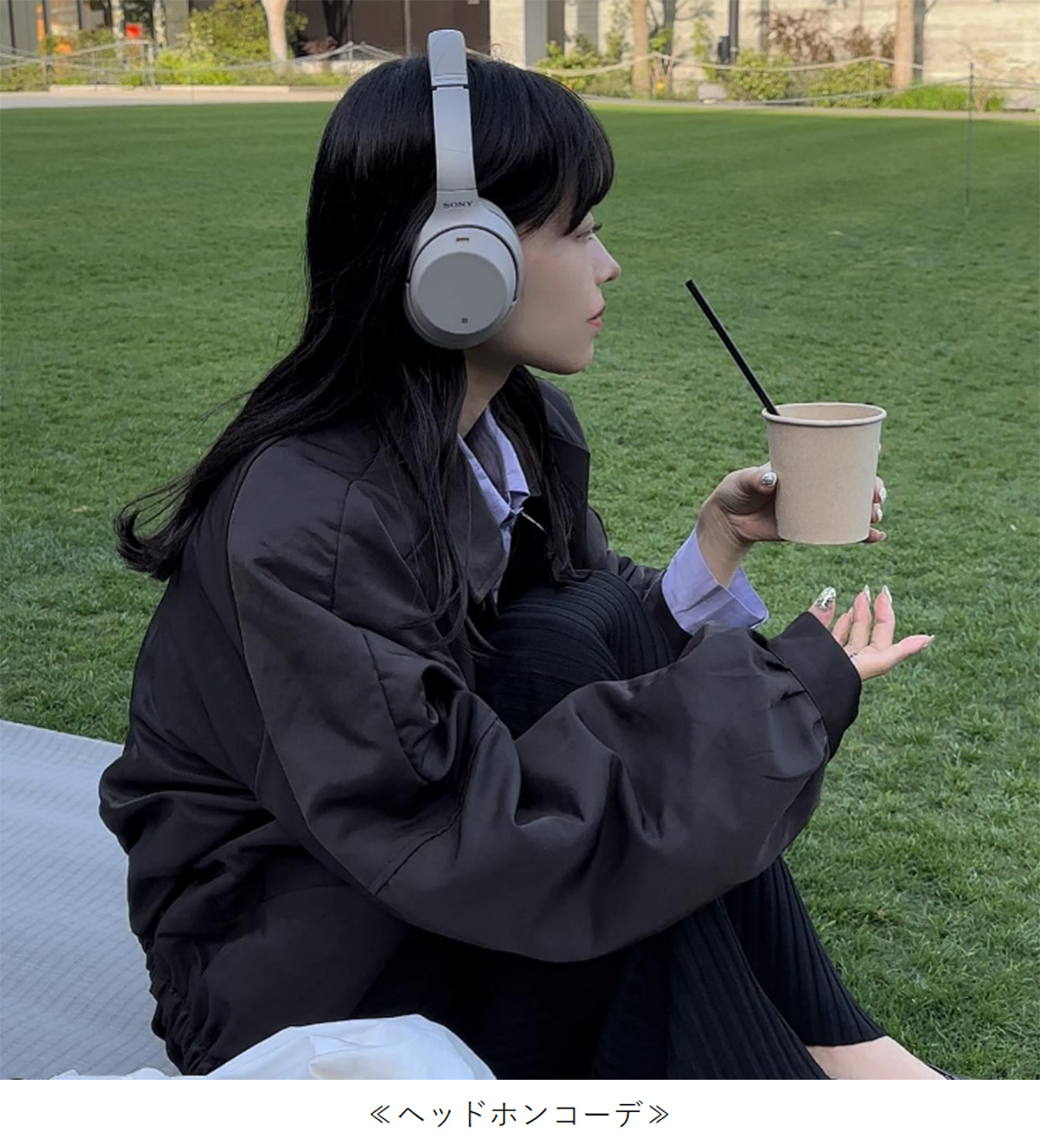 コーディネートのアクセントとして、ヘッドホンを取り入れたコーデ。音楽を聴くだけでなく、首から下げることでアクセサリー代わりにもなる点が魅力です。K-POPアイドルがファッションアイテムとして取り入れたことがきっかけとなり、トレンドとなりました。