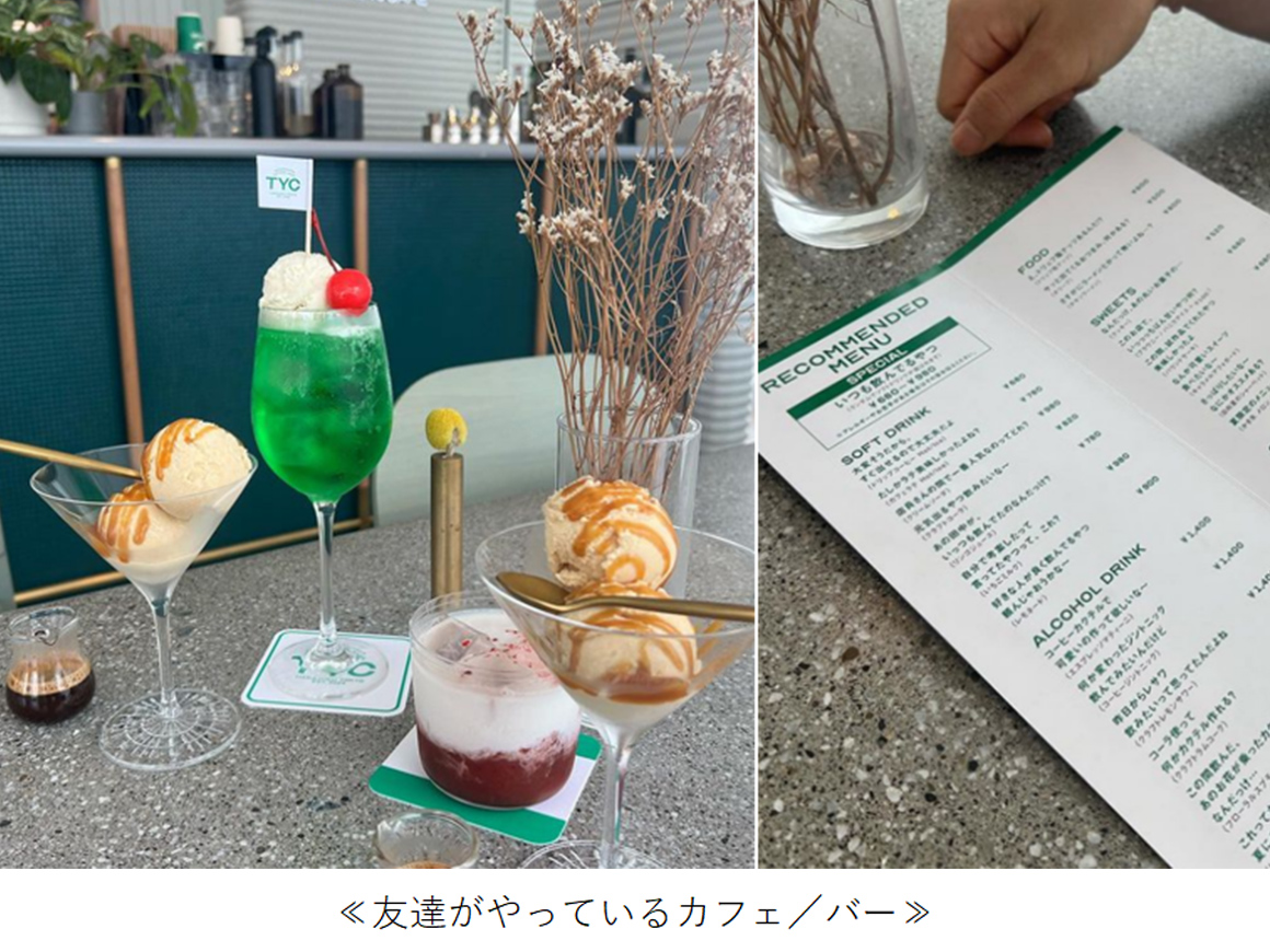 店員が客の友達という設定で接客してくれるカフェ。「いつも飲んでるやつ」など、お店の世界観に入り込めるメニューや、スタッフとのコミュニケーションで、友達のバイト先に遊びにきたかのような感覚が楽しめるなど、体験の没入感が魅力です。