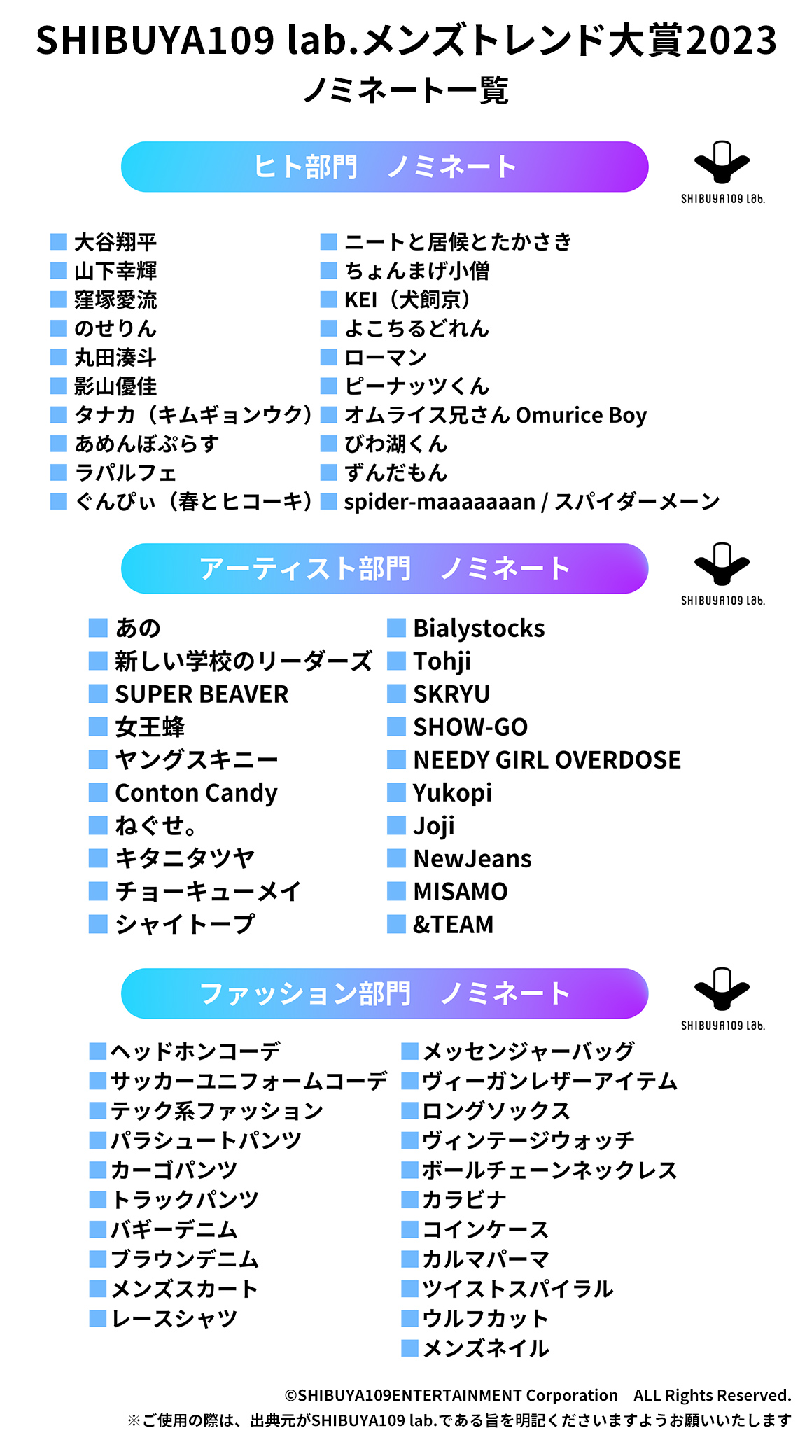 ※『SHIBUYA109 lab.メンズトレンド大賞2023』について