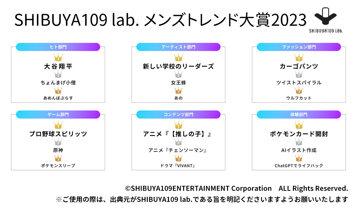日本初?Z世代メンズトレンド大賞『SHIBUYA109 lab.メンズトレンド大賞2023』発表!