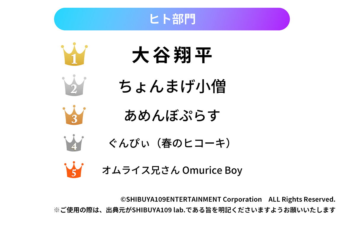 ノミネートを元に、各部門についてaround20(15~24歳)男性412名を対象にWEBアンケート調査を実施。各部門のトレンド大賞に選ばれたのはこちら