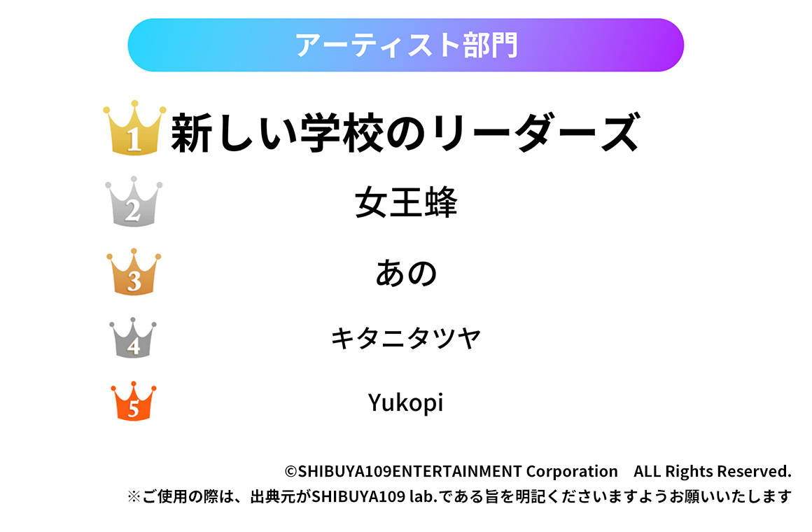 ノミネートには邦ロックバンドを中心にK-POP、ラッパー、ボカロPなど、幅広いアーティストが挙げられました。TikTokを中心に、SNSで投稿されるショート動画の挿入歌として多く使用されたアーティストが多数ランクインしました。