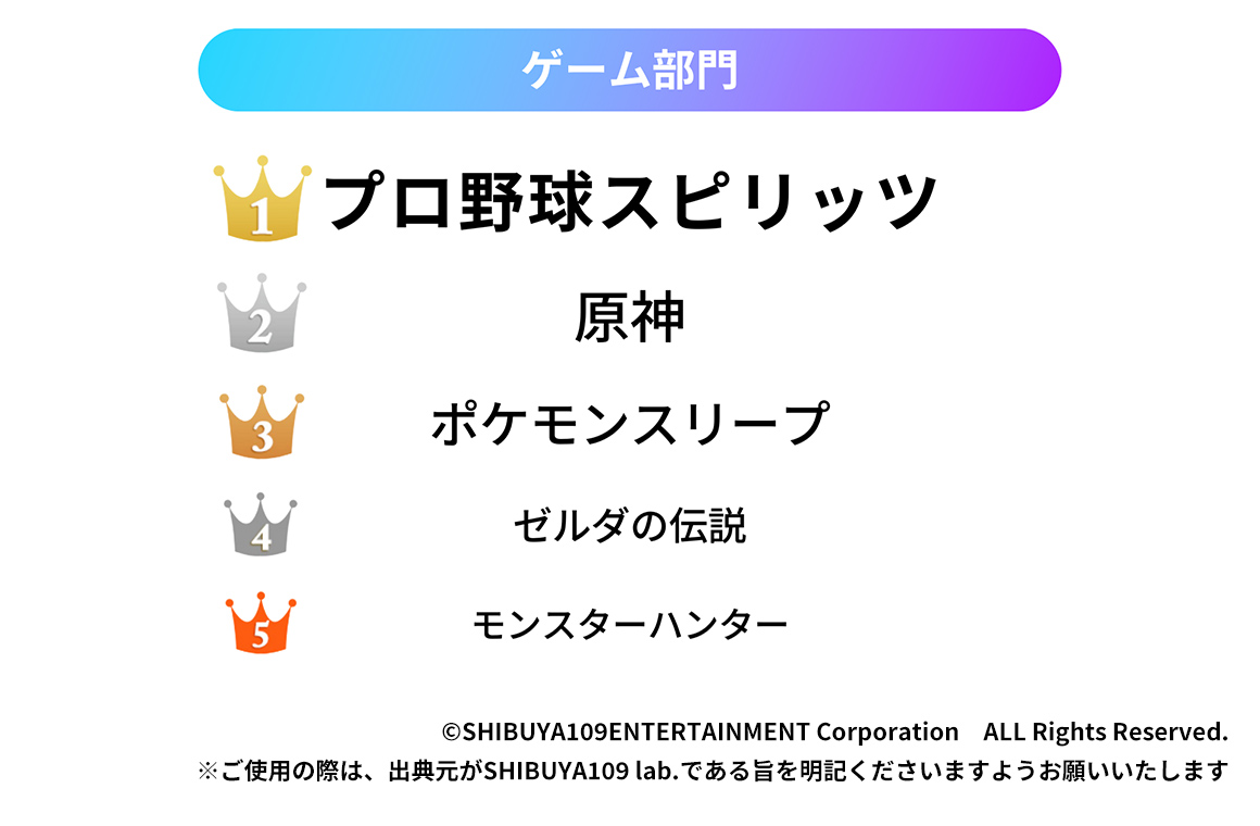 Z世代男子が最もお金をかけていることでもあるゲーム(※2)。ゲームクリアまでのプロセスが多様で、ゲーム実況等でプレイの様子を切り抜いて共有したくなるゲームが多くノミネートされました。またスマホやゲーム機など複数のデバイスでシームレスにプレイできることや、ゲームとして楽しいだけでなく、健康や思考力、勉強などにも役に立つ「エデュテイメント性」が重視されています。