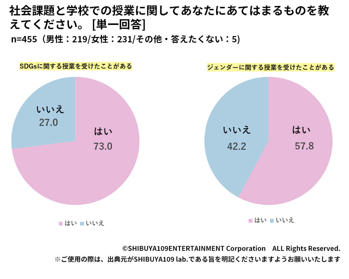 実際に、SDGsに関する情報が授業でも提供されていることは定量調査でもわかっており、「SDGsに関する授業を受けたことがある」Z世代は73.0%、「ジェンダーに関する授業を受けたことがある」は57.8%となりました。