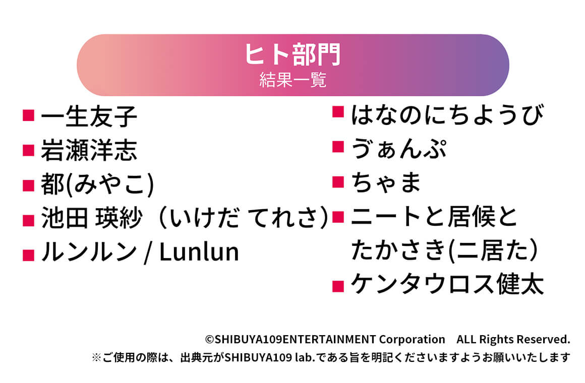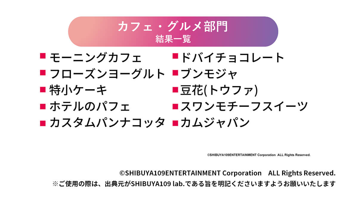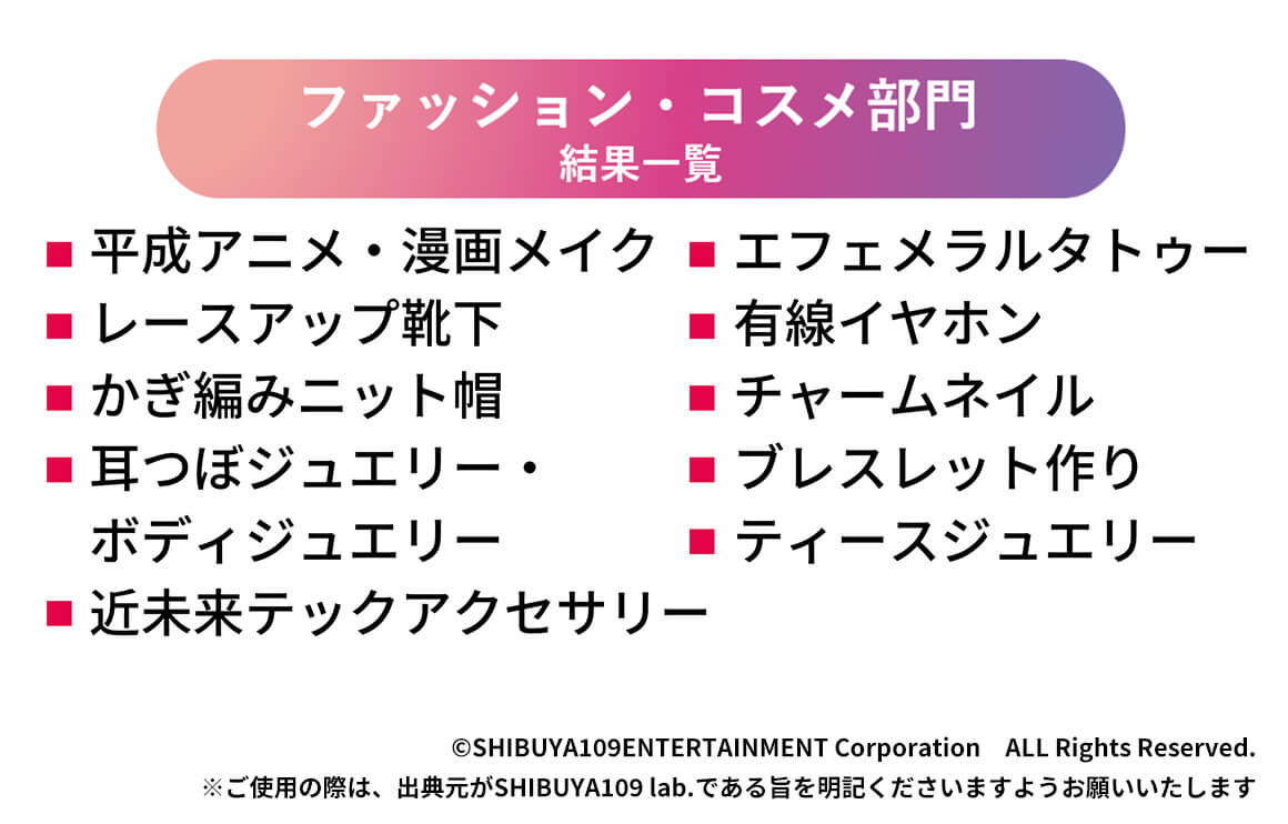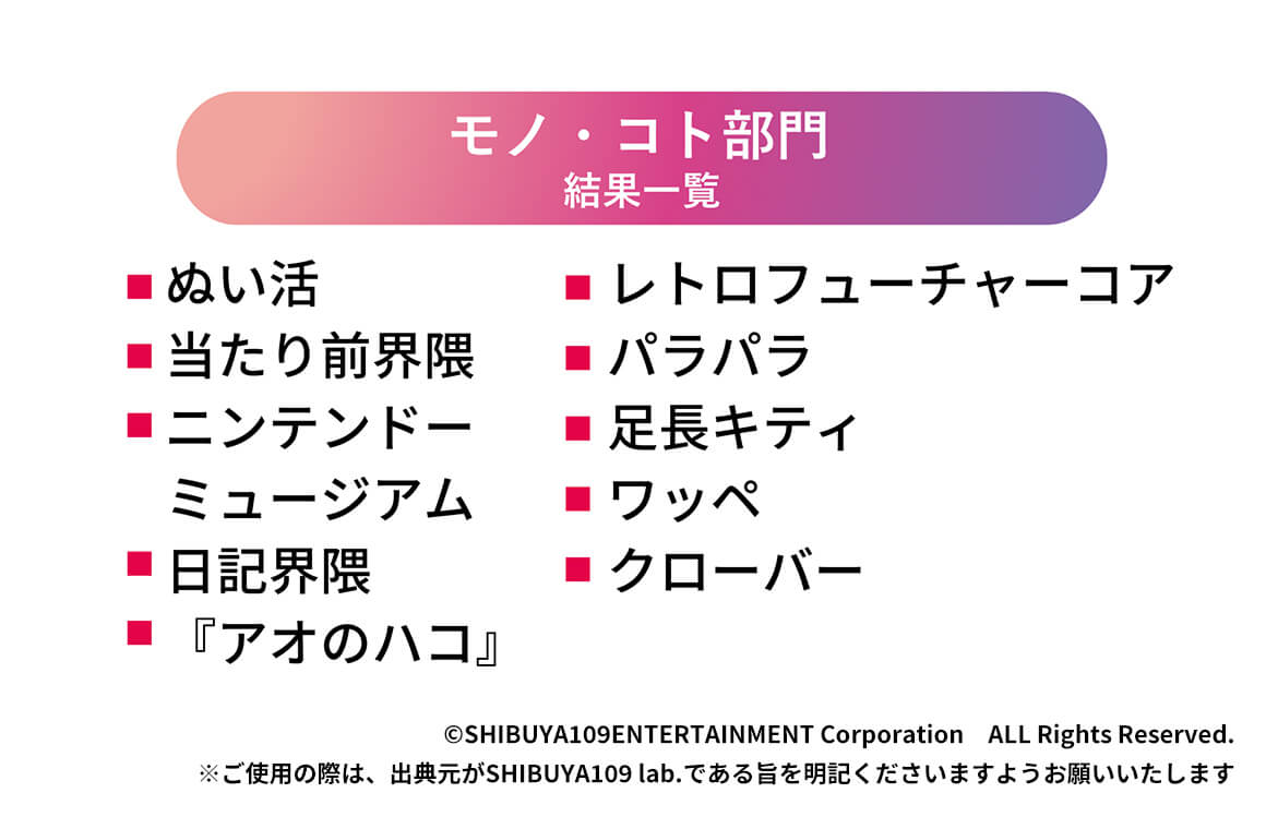 ※参考 2024年11月発表「SHIBUYA109 lab. トレンド大賞2024」https://www.shibuya109.co.jp/shibuya109lab/reports/241112/