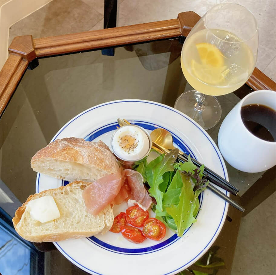 パンケーキや目玉焼き、ベーコンなど映画に出てくるような朝食を食べる朝活体験。ワンプレートに主食やサラダが敷き詰められている場合が多く、健康的かつ満足感のあるビジュアルが特徴です。
