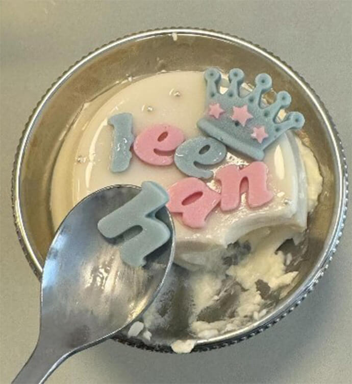アルファベットや様々なモチーフのチャームチョコレートなどを乗せてアレンジして楽しむパンナコッタ。主に推し活文脈で楽しまれています。