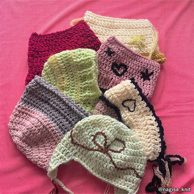 かぎ針と毛糸で編まれたニット帽。K-popアイドルが手作りしたニット帽をSNSにアップし、それを真似する若者が急増。制作過程をショート動画で投稿することが多く、そのオリジナル性が人気となっています。