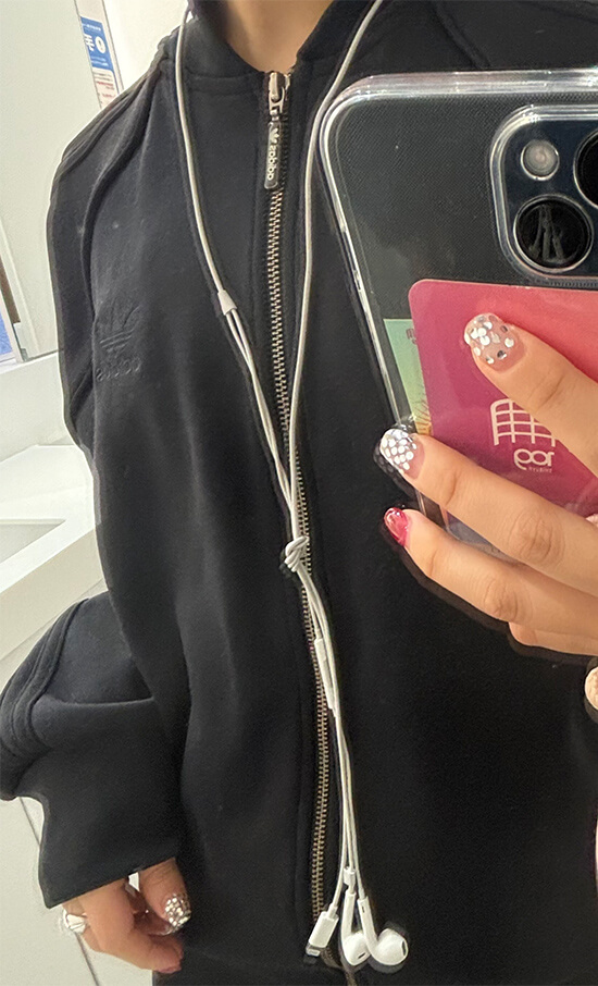 ヘッドホンやイヤホンケースに付ける、シルバーやメタリック素材の近未来感が特徴のアクセサリー。代表例としてANDAASHが挙げられ、コーディネートの一部として楽しまれています。韓国アイドルaespaとのコラボ商品や韓国の人気女優ハン・ソヒが愛用し注目されています。