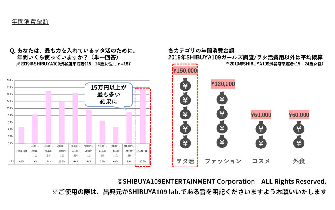 2019年の調査では、「推し活」への支出額が年間150,000円にものぼることがわかり、若者にとって「推し活」は当たり前になるだけではなく、消費活動の中で大きな支出先になっていることがわかります。
