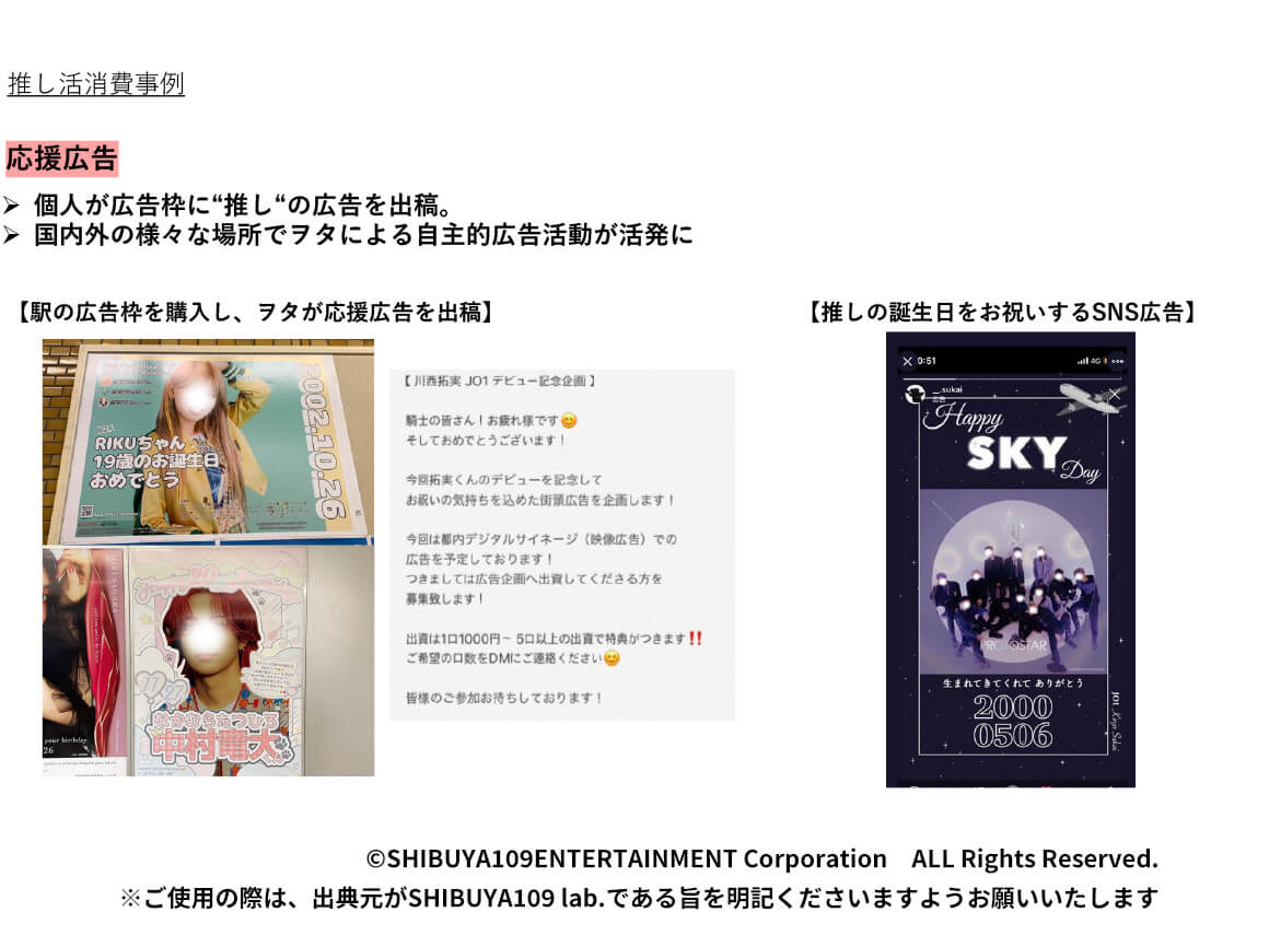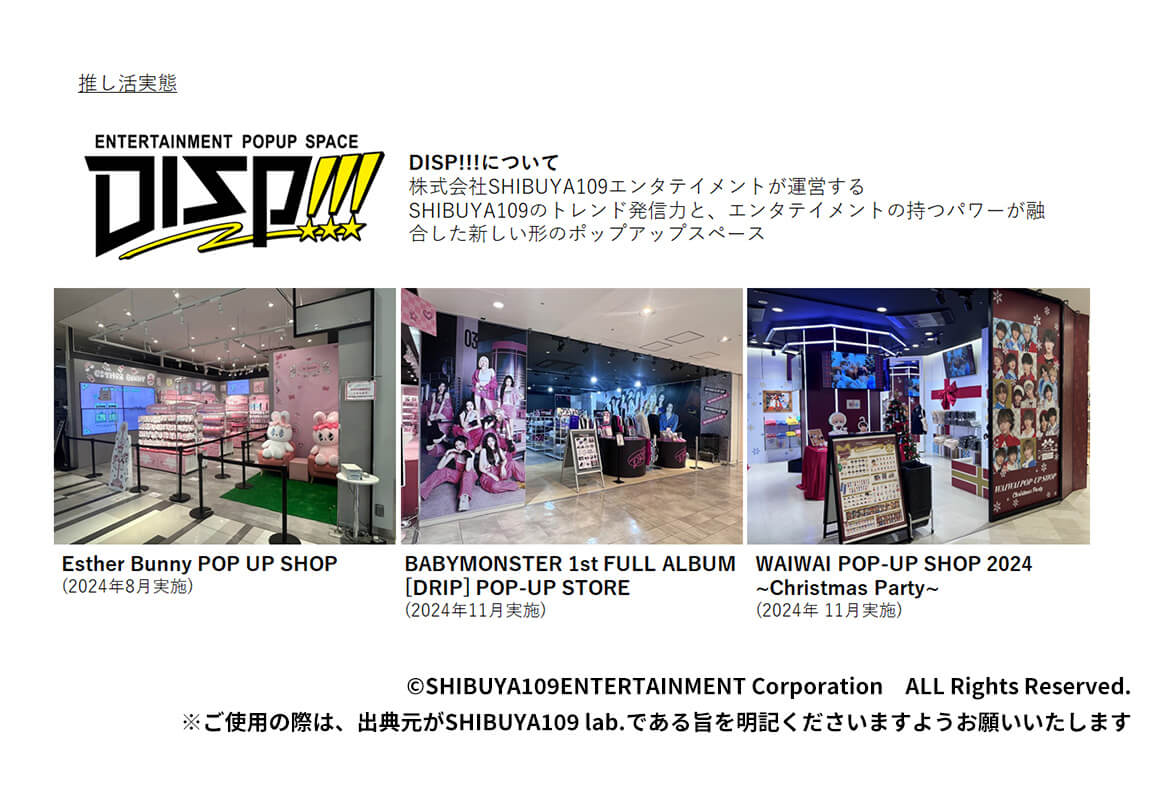 また、SHIBUYA109でも、推し活消費を軸にPOPUP STOREや商品などを複数企画してまいりました。SHIBUYA109のエンタテイメントポップアップスペース『DISP!!!』では、コンテンツによって多くのZ世代が来場し行列ができることも多く「推し活」への理解が、若者の心を掴む上で大きな助けになることを実感しています。