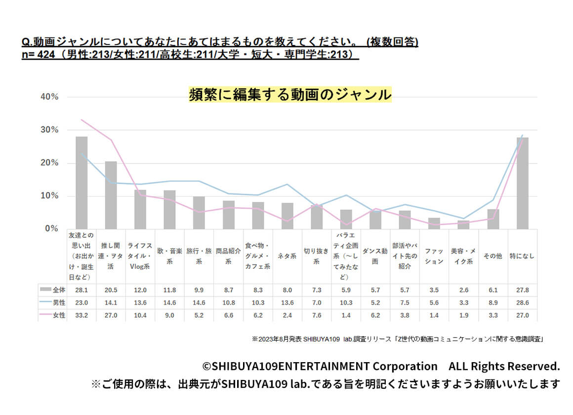 また、2022年の調査によると、頻繁に編集する動画のジャンルとして、「友達との思い出」の次に「推し活動画」が多くなっており、SNSにおいても「創作」が行われていることがわかります。また、芸能人にまつわる発信は、一般人から行われるのも当たり前になっており、重要な情報発信源になっているともいえるでしょう。