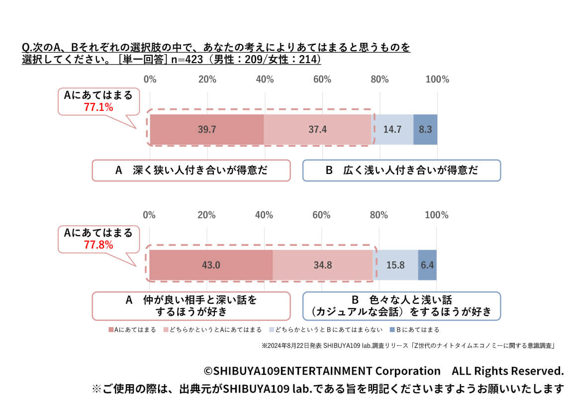 「ナイトアクティビティ×食」を考えるにあたって、まず押さえておきたいポイントとしては、若者はあたらしい出会いを求めているわけではないこと。あくまでナイトアクティビティは、“仲が良い人と、じっくり話をして関係を深める時間”として使いたいと思っているようです。