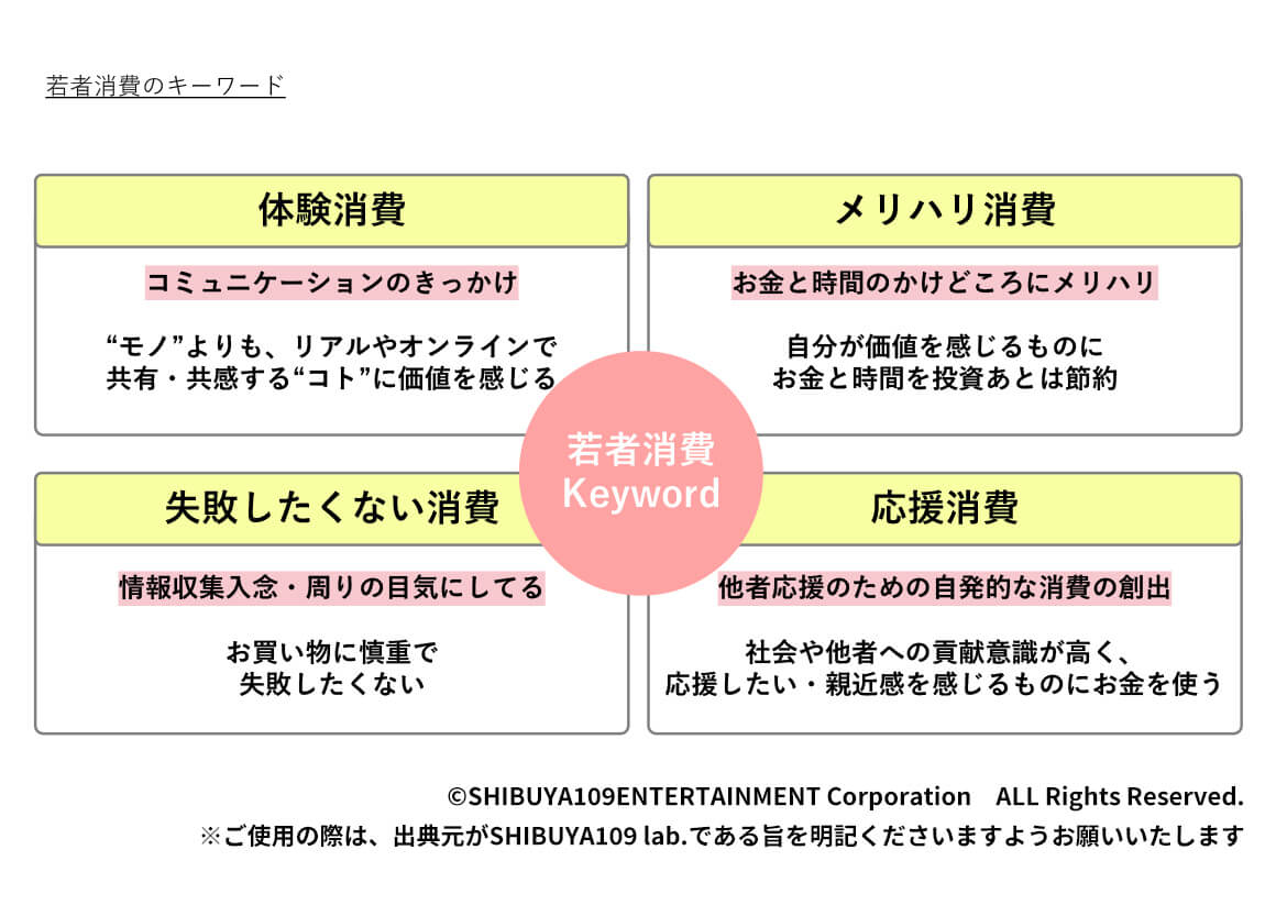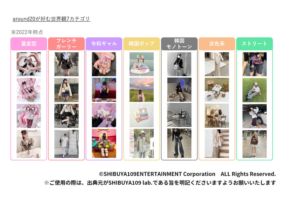 私たちSHIBUYA109 lab.は、2018年より15-24歳(=around20)の若者を対象に、様々なテーマで定量・定性調査分析を行ってまいりました。「SHIBUYA109 lab.変遷レポート」では、これまでの調査結果を改めて再編集し、若者の消費の変遷としてお伝えいたします。
