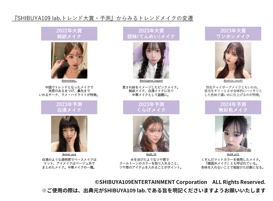 今回のテーマは「ファッション・コスメ」。SHIBUYA109 lab.トレンド大賞でも初回から取り上げているテーマであり、変遷レポートでも、注目すべき傾向を複数お伝えしてきました。こちらの記事では、さらにファッション・コスメ領域に特化した、トレンドの変遷についてご紹介します。
