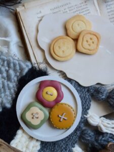 ボタンモチーフのクッキー。ファッションでもボタンモチーフを取り入れる「ボタンコア」が注目されています。